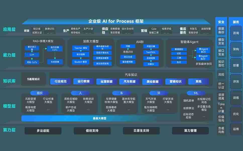 端到端的一站式AI工作空间深度融合了从企业战略规划到日常经营的全流程业务板块,,,定向解决车企内部领域多、、、、部门多、、、链条长、、场景碎片化等难题,,支持车企快速构建以AI为核心的生产力写作体系,,,实现任务执行与AI能力的无缝集成与交互